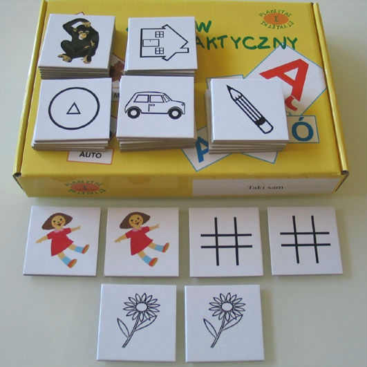 Zestaw ten służy do nabywania umiejętności wyszukiwania takich samych elementów, wyszukiwania ich z pamięci oraz zapamiętywania ciagu obrazków lub kształtów geometrycznych. Są to ćwiczenia wstępne do zapamiętywania sylab i wyrazów jednosylabowych.